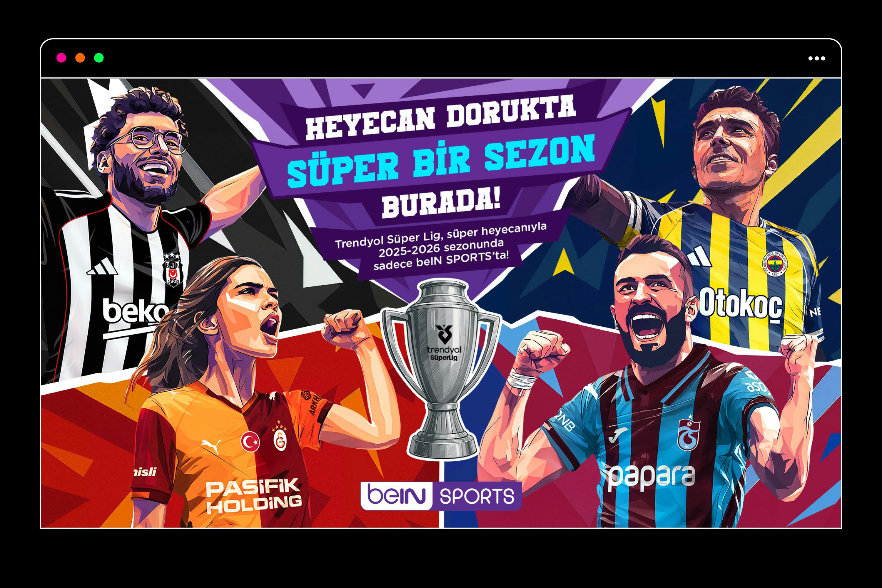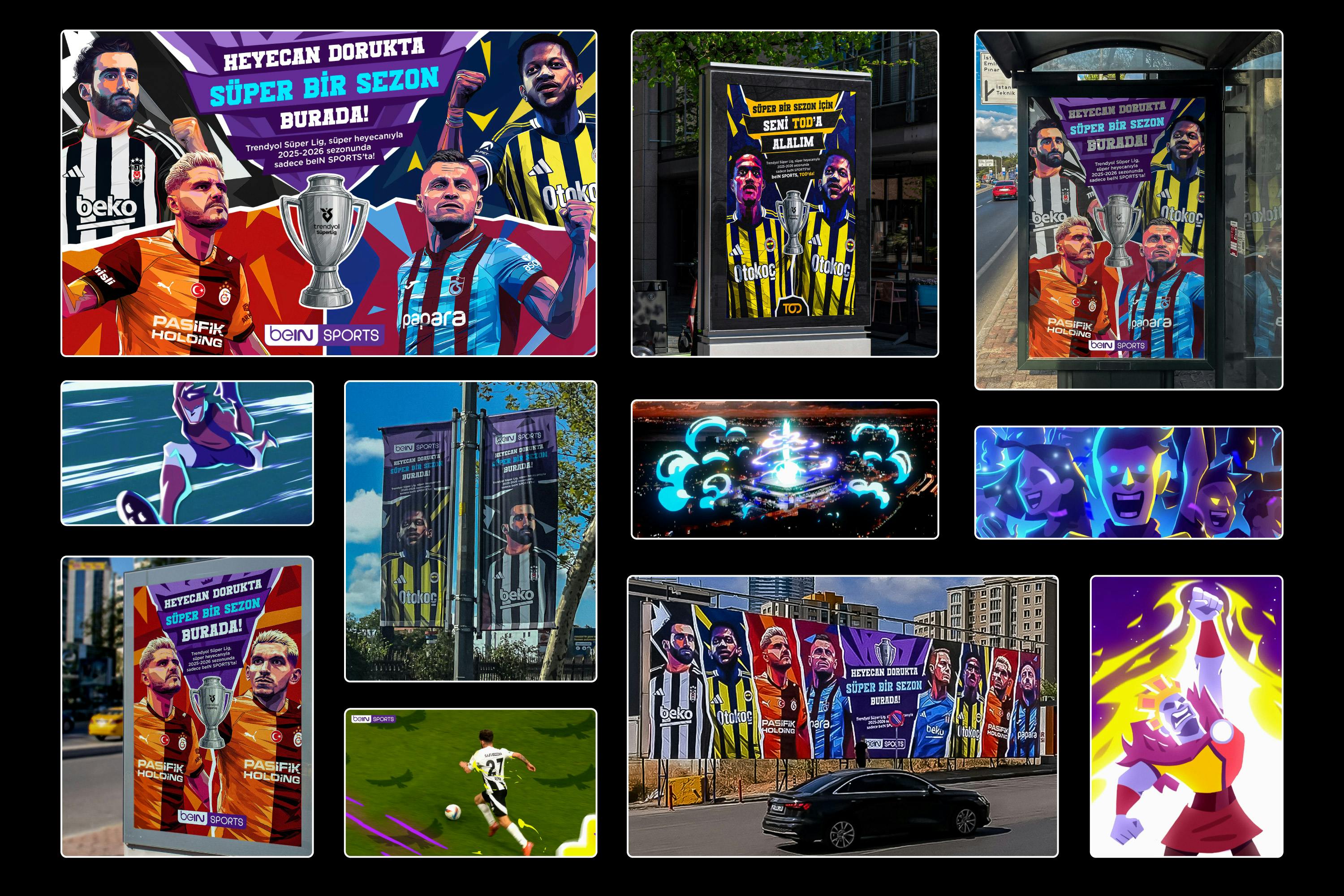 Türkiye’de spor yayıncılığının referans noktası beIN SPORTS, Trendyol Süper Lig’in yeni sezonunu hazırladığımız kapsamlı bir kampanyayla karşıladı. Yeni sezonun açılış filmi için geçtiğimiz sezona damga vuran anları cell animation tekniğiyle yeniden canlandırdık. Bu özel filmde, Bedük ile birlikte çalışarak “Koyver Kendini” parçasını Süper Lig ruhuna uygun şekilde yeniden düzenledik ve coşkuyu zirveye taşıdık.
