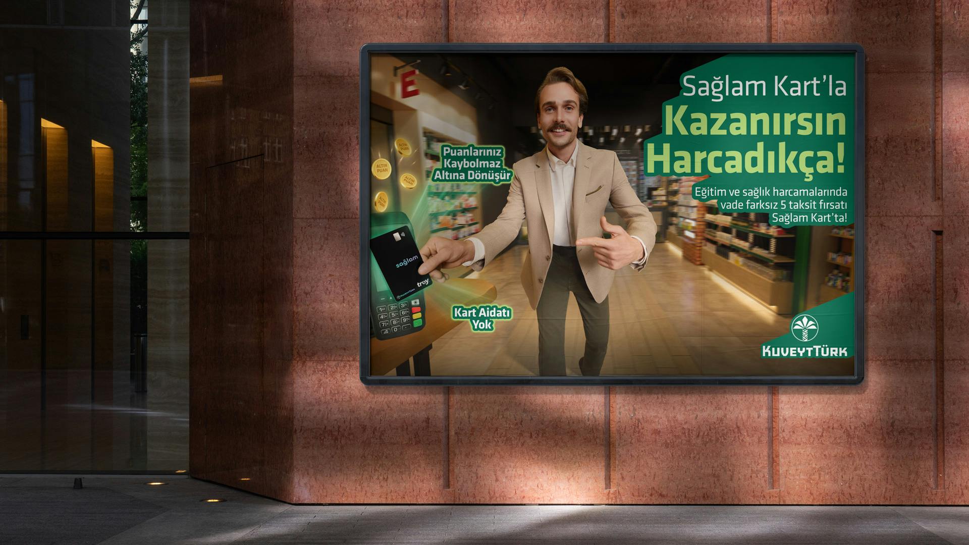 Filmi, kullanıcıyı aksiyona davet eden net bir çağrıyla tamamladık: Mobil uygulama üzerinden Kuveyt Türk’lü ol, Sağlam Kart’ın avantajlı dünyasına gir, harcadıkça kazan.