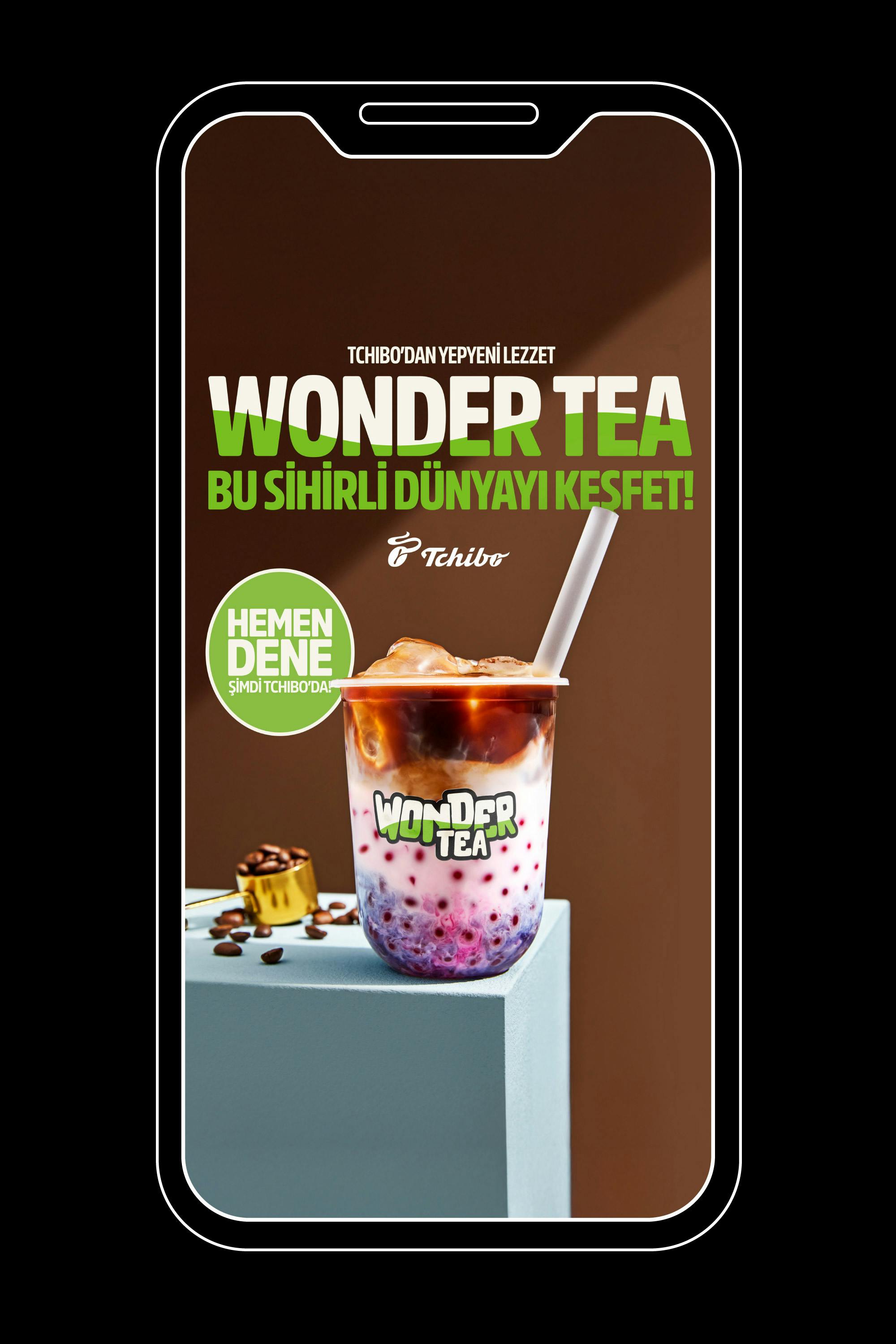 Tchibo’nun genç tüketicilere ulaşmak için yükselen bir trend olan bubble tea kategorisini bir stratejik kaldıraç olarak konumlandırmasıyla başlayan marka yaratma yolculuğunda, Wonder Tea'nin temelleri atıldı. Gençlerin ilgisini çekmek ve markayı bu dinamik segmentte konumlandırmak amacıyla yapılan kapsamlı isim çalışmalarının ardından, Tchibo, sunulan seçenekler arasından Wonder ismini seçti. Bu isimle örtüşen bir şekilde, tüketicide merak uyandıran, enerjik ve kendine özgü bir görsel ve iletişim dünyası yaratmaya odaklandık.