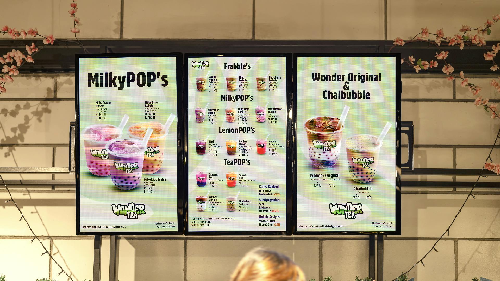 Görsel dünyamız, cesur renkler ve eğlenceli desenlerle şekillendi. Wonder Tea’nin logosu, ilk bakışta dikkat çeken ve markanın enerjisini yansıtan bir ikon haline geldi. Bu dinamik kimlik sadece bardak ve pipetlerde değil; mağaza içi köşelerde, ilgi çekici tasarım ürünlerinde ve her detayda hayat buluyor.